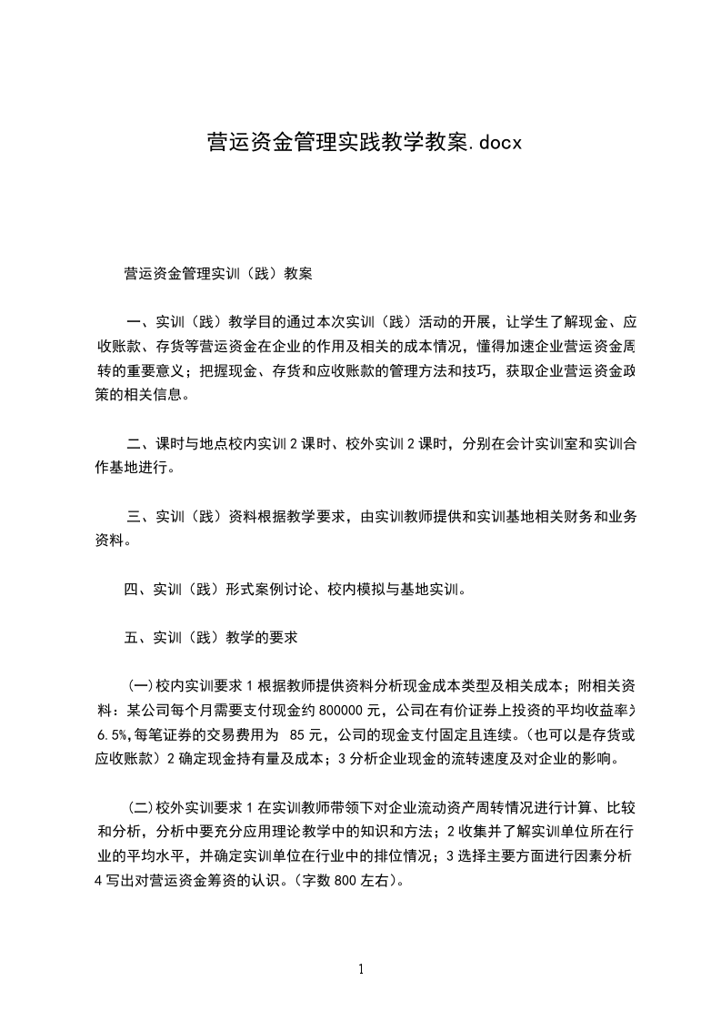 营运资金管理实训(践)教案