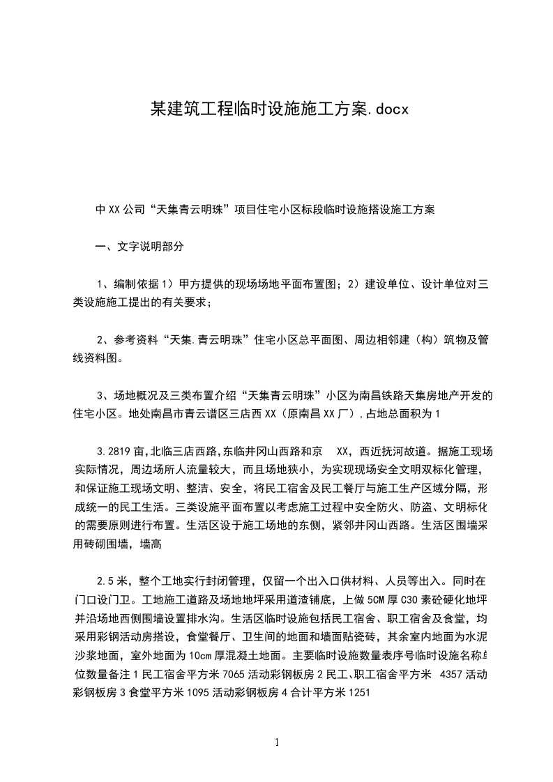 中XX公司“天集青云明珠”项目住宅小区标段临时设施搭设施工方案