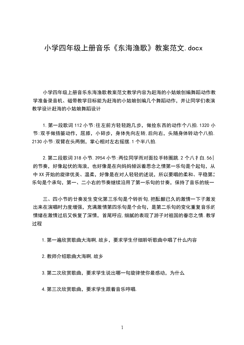 小学四年级上册音乐东海渔歌教案范文教学内容为赶海的小姑娘创编舞蹈动作教学准备录音机、磁带教学目标能为赶海的小姑娘创编几个舞蹈动作,并让同学们表演.教学设计赶海的小姑娘舞蹈设计