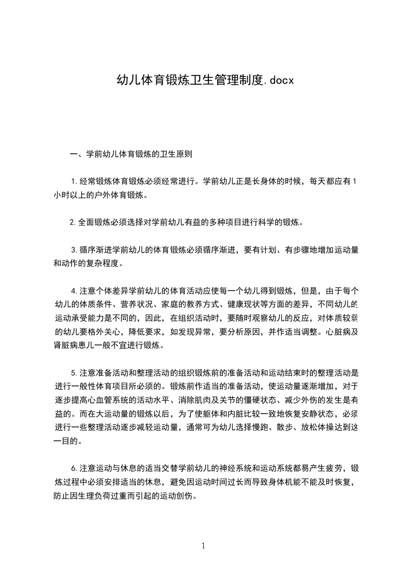 一、学前幼儿体育锻炼的卫生原则