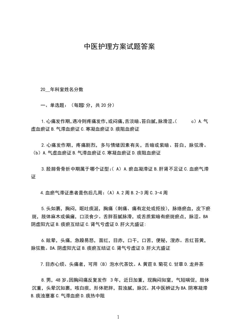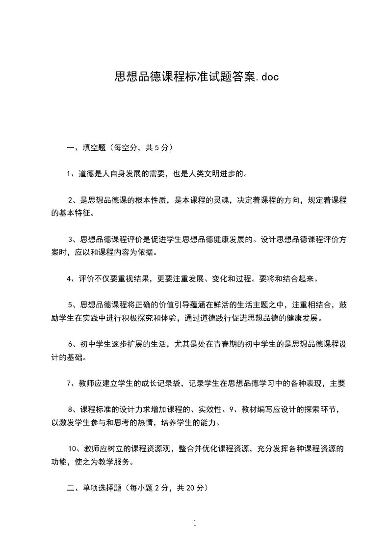 二、判断以下各说法正误(每题2分,共20分)1错误2正确3正确4错误5错误6错误7错误8正确9错误10错误