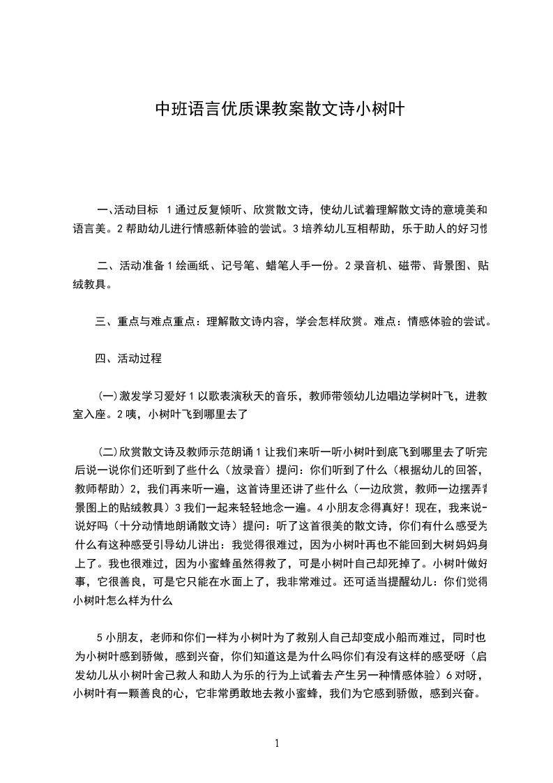 语言散文诗教案落叶语言散文诗教案落叶设计思路:散文诗落叶是大班语言领域活动中的一课,其选材来自我们身边的自然事物,自然界的神奇变化总是吸引幼儿关注、好奇的目光,激发起幼儿探究的欲望。纲要指出,在幼儿园的语言教育中,我们要"引导幼儿接触优秀的儿童文学作品,使之感受语言的丰富和优美,并通过多种活动帮助幼儿加深对作品的体验和理解。"因此,在本次活动中,我通过多种活动形式为幼儿创造了一个以看、听、说为主体的语言环境,让幼儿在环境中产生对语言的兴趣,调动幼儿想说、爱说、愿说的欲望,同时也将各领域的内容有机整合,从而让幼儿多维度地去感受美、欣赏美、体会美与表现美。活动目标: