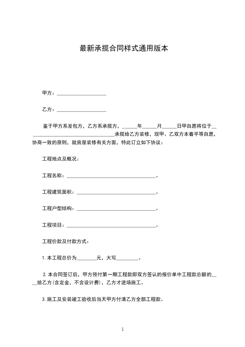 鉴于甲方系发包方,乙方系承揽方,______年______月______日甲自愿将位于___________________________________承揽给乙方装修,现甲、乙双方本着平等自愿,协商一致的原则,就房屋装修有关方面,特此订立如下协议: