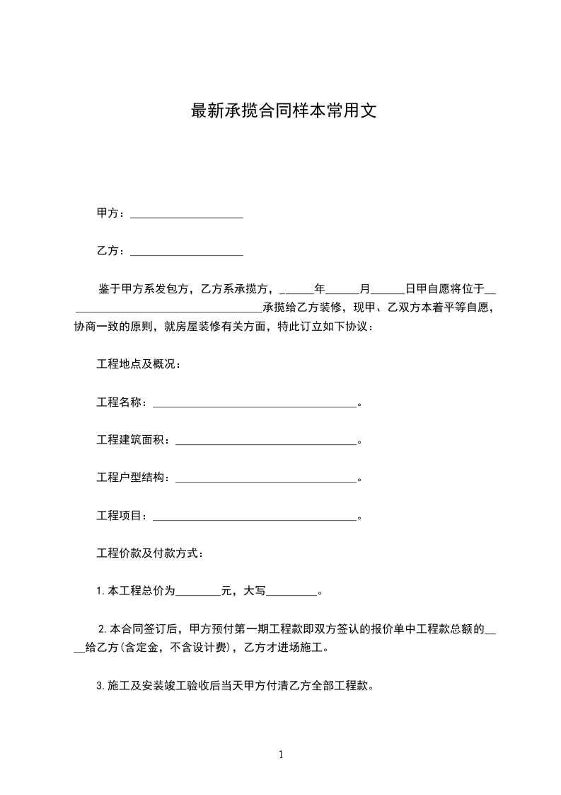 鉴于甲方系发包方,乙方系承揽方,______年______月______日甲自愿将位于___________________________________承揽给乙方装修,现甲、乙双方本着平等自愿,协商一致的原则,就房屋装修有关方面,特此订立如下协议:
