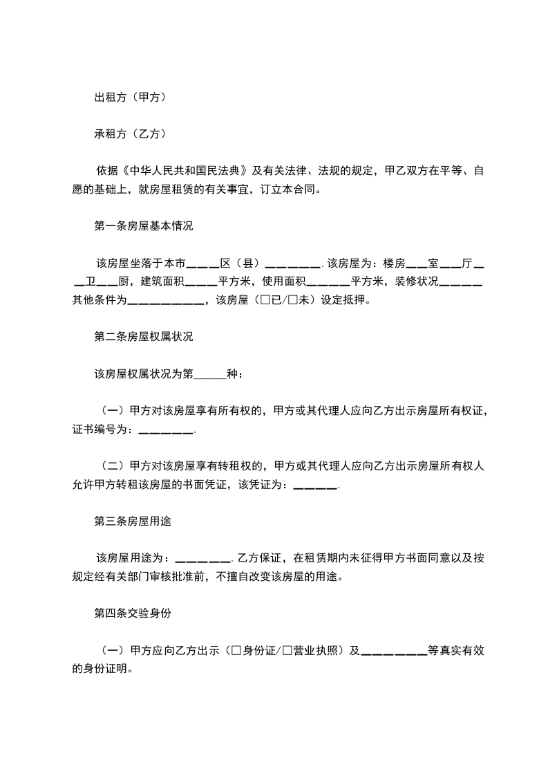 (二)乙方应向甲方出示(□身份证/□营业执照)及▁▁▁▁▁▁等真实有效的身份证明。