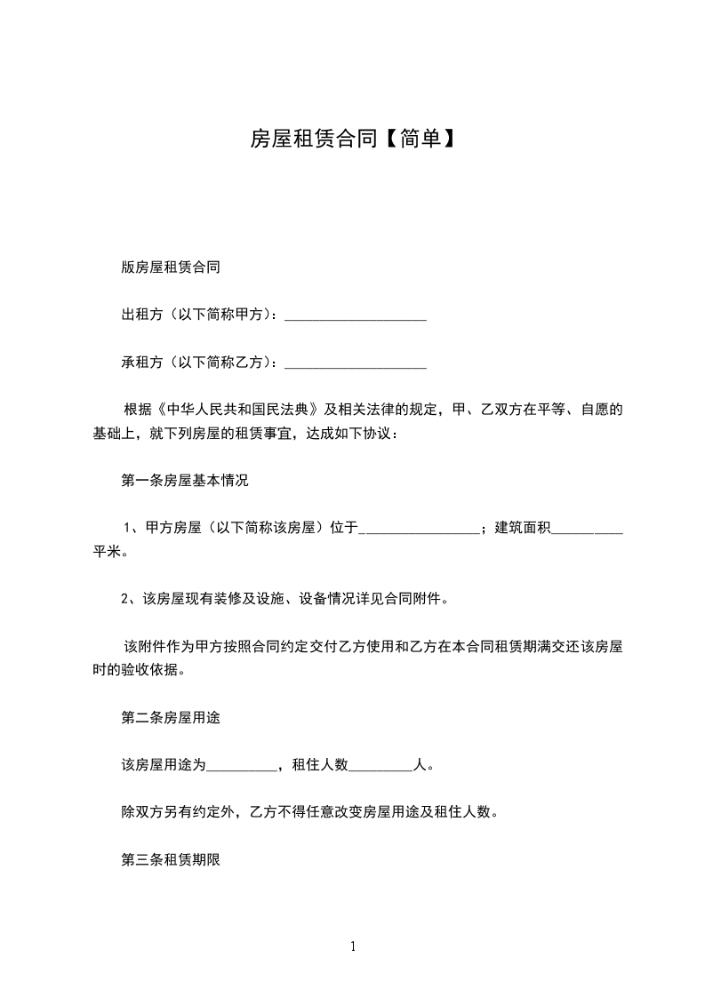 (三)租赁期内,甲方需提前收回该房屋的,应提前▁▁日通知乙方,将已收取的租金余额退还乙方并按月租金的▁▁▁▁%支付违约金。