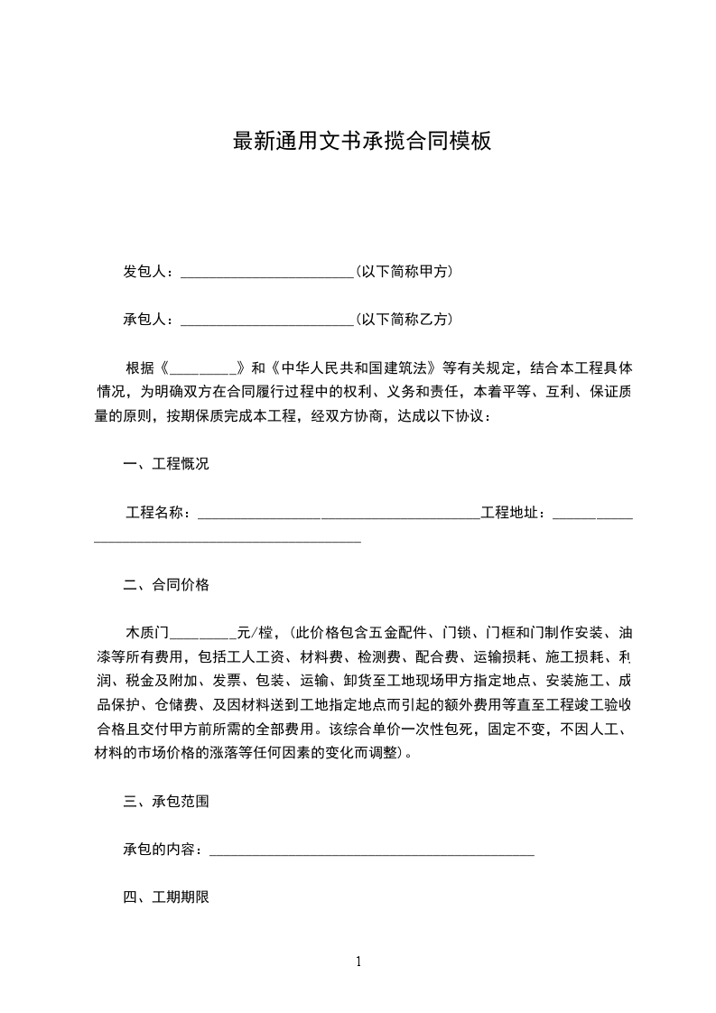 第一条:施工项目名称.施工内容施工地点施工期限:__________年_________月________日起至相应工程完工。