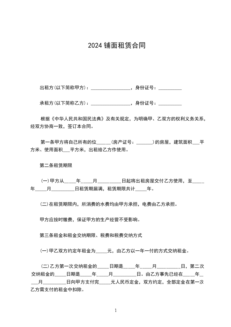 1、甲方须于________年____月____日将该商铺交付乙方使用。