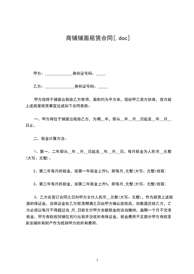 3、合同期满时,乙方须在租约期满之日退还房屋,同时经甲方验收该商铺无设备损坏及欠缴的水电费与物业管理费后十天内,返还乙方所交的保证金。