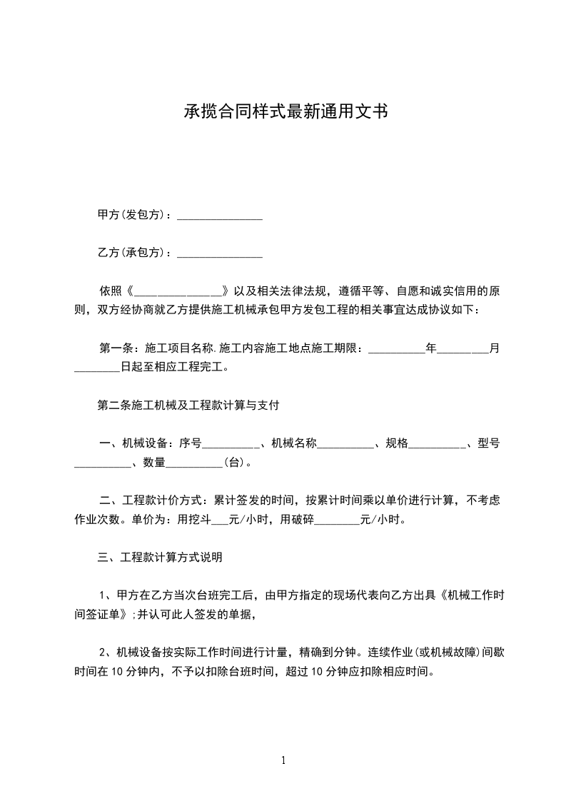 依照《_______________》以及相关法律法规,遵循平等、自愿和诚实信用的原则,双方经协商就乙方提供施工机械承包甲方发包工程的相关事宜达成协议如下: