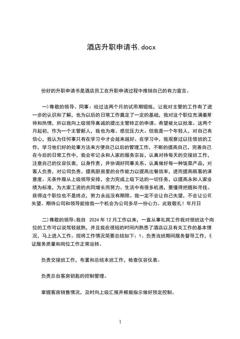 三)尊敬的公司领导:首先感谢领导为我们创造转正申请的机会,经过两个多月的工作锻炼自己各方面素质得以提高,两个月的工作使我深深感受到机遇和挑战并存,成功与辛酸同在。我于2024年12月3日成为公司的试用员工,作为一个应届毕业生,初来公司,曾经很担心不知该怎么与人共处,该如何做好工作,但是公司宽松融洽的工作氛围、团结向上的企业文化,让我很快完成了从学生到职员的转变,让我较快适应了公司的工作环境。在本部门的工作中,我一直严格要求自己,认真及时做好领导布置的每一项任务。不懂的问题虚心向同事和经理学习请教,不断提高充实自己,希望可以为公司做出更大的贡献。两个多月来,我在公司领导、销售经理和同事们的热心帮助及关爱下取得了一定的进步,现对工作中值得肯定和不足之处以及未来工作计划进行总结:1对接待客户,做日报、台账,等基础工作有较强的处理能力。希望早日得到大家的认同。2敬业精神和思想境界,业务素质在这里都得到了很大的进步与提高,同时也激励我在工作中不断前进与完善。3工作主动性的发挥还是不够,对工作的预见性和创造性还是不够,离领导的要求还有一定的距离。4有时候办事不够干练,言行举止没注重约束自己。5在今后工作中加强业务业务知识方面的培训,特别是接代客户方面6尊重服从,谦虚谨慎对待工作7积极学习新知识、新技能,注重自身发展与进步,平时利用下班时间培训学习,来提高自己的综合素质总之,经过两个月的时间,我认为我能够积极、主动、熟练的完成自己的工作,在工作中能够发现问题,并积极全面的配合公司的要求来展开工作,与同事能够很好的配合和协调。在以后的工作中我会一如继往,对人:与人为善,对工作:力求完美,不断的提升自己的业务水平及综合素质,以期为公司的发展尽自己的一份力量。此致敬礼!年月日看过“”的人还6