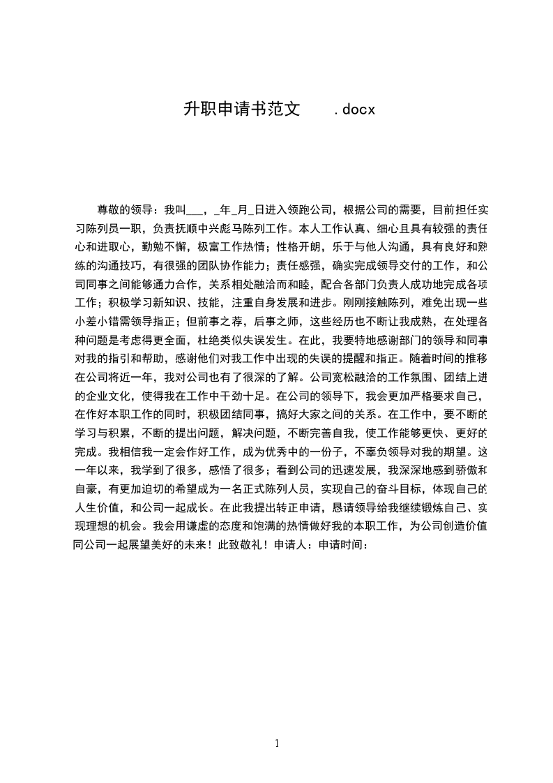职申请书是个人提出升职申请时递出的形象名片。