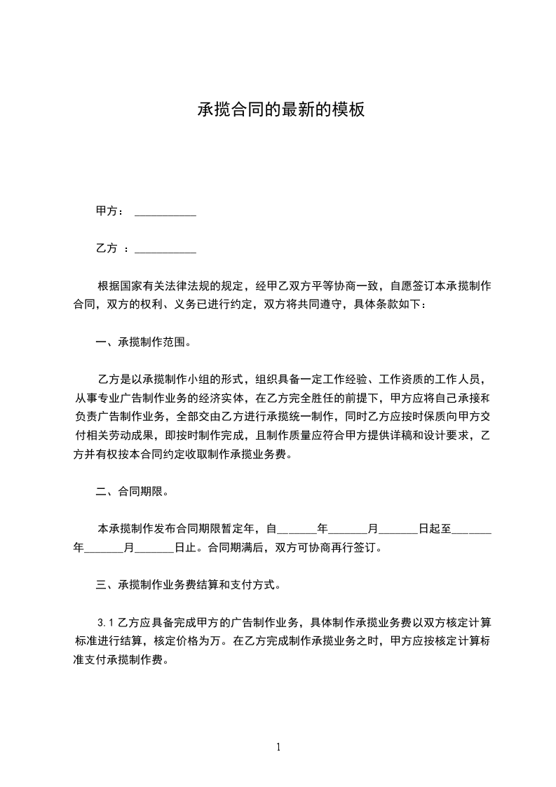 最新的模板承揽合同