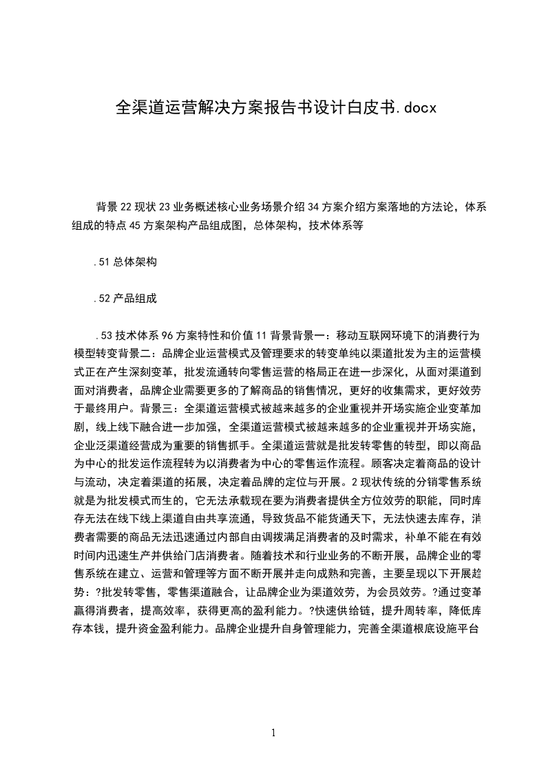 .53技术体系96方案特性和价值11背景背景一:移动互联网环境下的消费行为模型转变背景二:品牌企业运营模式及管理要求的转变单纯以渠道批发为主的运营模式正在产生深刻变革,批发流通转向零售运营的格局正在进一步深化,从面对渠道到面对消费者,品牌企业需要更多的了解商品的销售情况,更好的收集需求,更好效劳于最终用户。背景三:全渠道运营模式被越来越多的企业重视并开场实施企业变革加剧,线上线下融合进一步加强,全渠道运营模式被越来越多的企业重视并开场实施,企业泛渠道经营成为重要的销售抓手。全渠道运营就是批发转零售的转型,即以商品为中心的批发运作流程转为以消费者为中心的零售运作流程。顾客决定着商品的设计与流动,决定着渠道的拓展,决定着品牌的定位与开展。2现状传统的分销零售系统就是为批发模式而生的,它无法承载现在要为消费者提供全方位效劳的职能,同时库存无法在线下线上渠道自由共享流通,导致货品不能货通天下,无法快速去库存,消费者需要的商品无法迅速通过内部自由调拨满足消费者的及时需求,补单不能在有效时间内迅速生产并供给门店消费者。随着技术和行业业务的不断开展,品牌企业的零售系统在建立、运营和管理等方面不断开展并走向成熟和完善,主要呈现以下开展趋势:?批发转零售,零售渠道融合,让品牌企业为渠道效劳,为会员效劳。?通过变革赢得消费者,提高效率,获得更高的盈利能力。?快速供给链,提升周转率,降低库存本钱,提升资金盈利能力。品牌企业提升自身管理能力,完善全渠道根底设施平台: