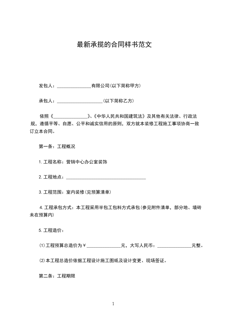 2、中途废止合同,属承揽方提供原材料的,偿付承揽方的未履行部分价款总值的_________%(10%--30%幅度)的违约金;不属承揽方提供原材料的,偿付承揽方以未履行部分酬金总额的_________%(20%---60%的幅度)违约金。