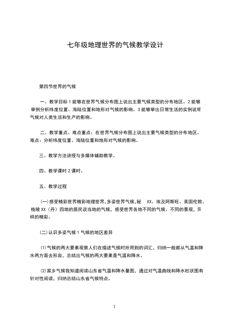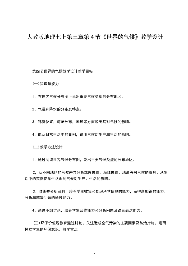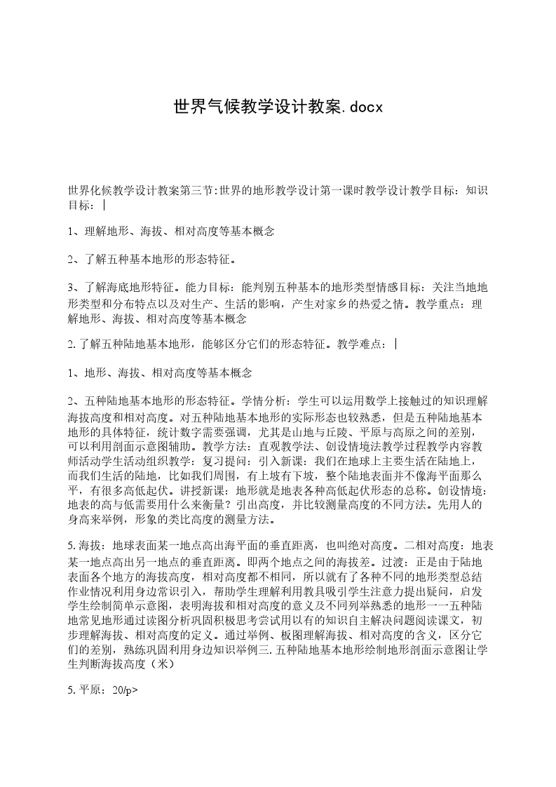世界化候教学设计教案第三节:世界的地形教学设计第一课时教学设计教学目标:知识目标:|