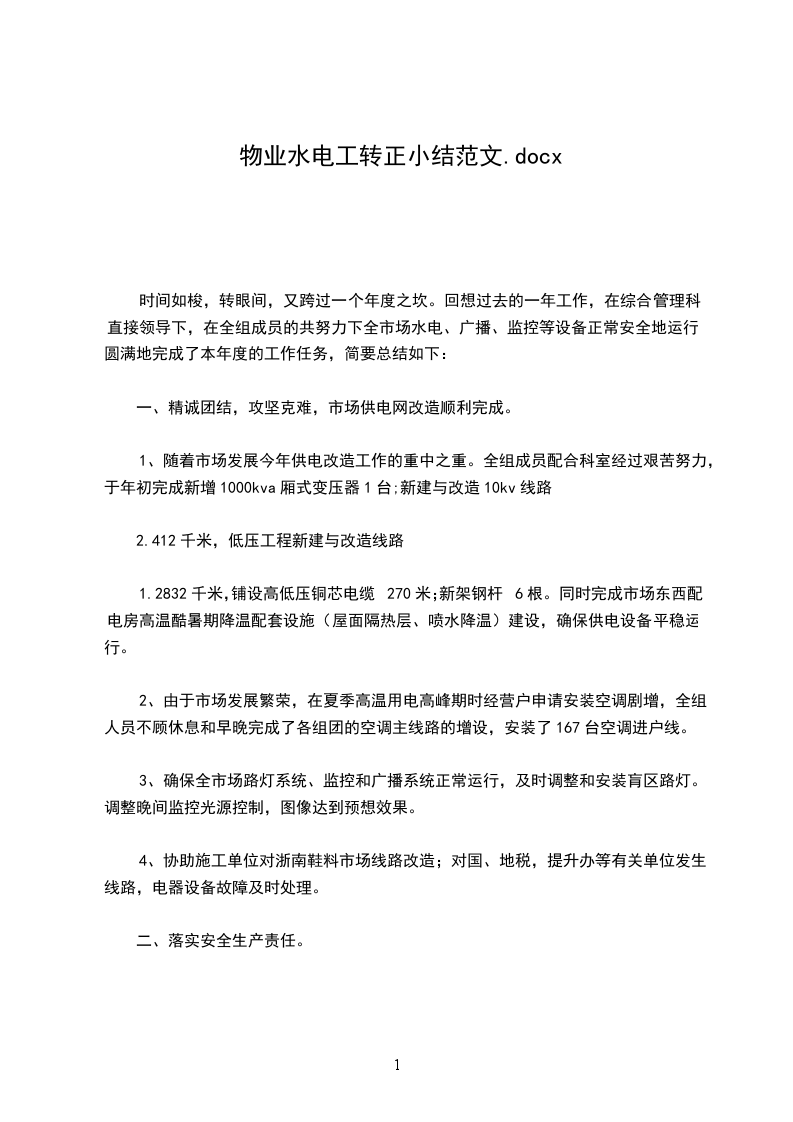 时间如梭,转眼间,又跨过一个年度之坎。回想过去的一年工作,在综合管理科直接领导下,在全组成员的共努力下全市场水电、广播、监控等设备正常安全地运行,圆满地完成了本年度的工作任务,简要总结如下:
