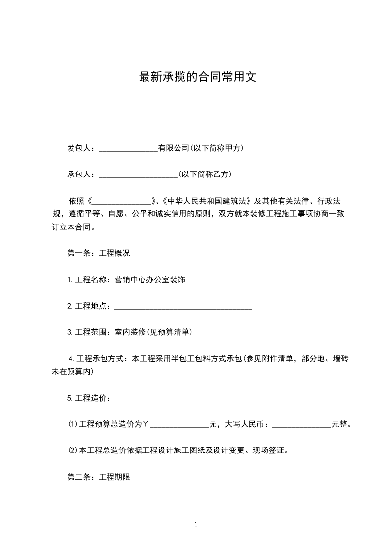 1、开始工作日期:_________年_________日,结束工作日期:门必须于_________年_________日完成。