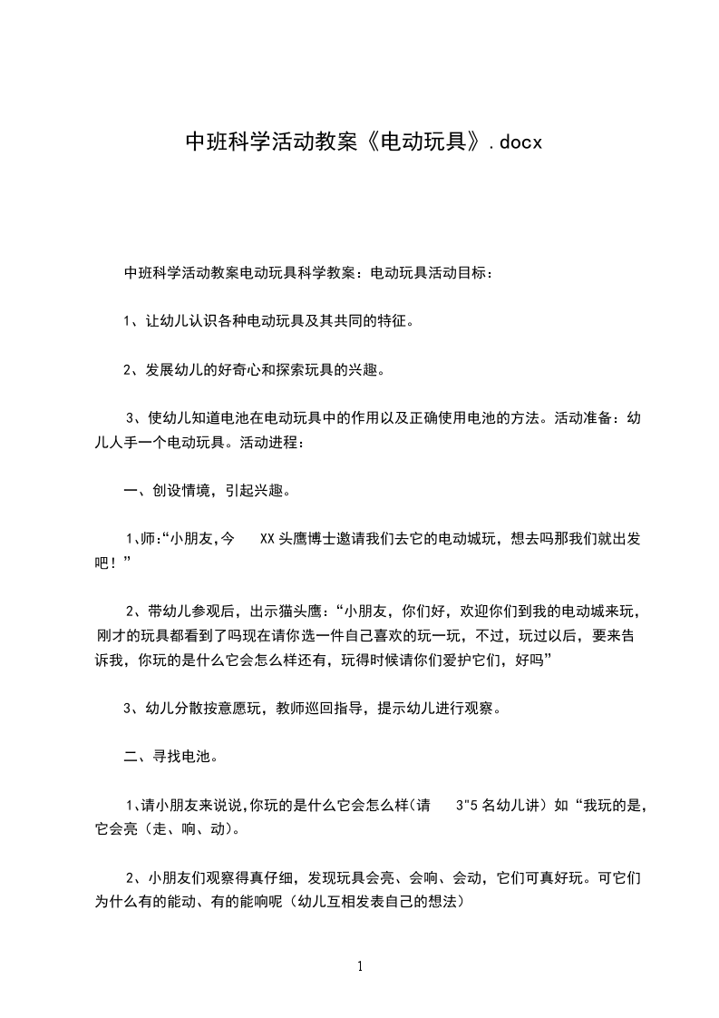 中班科学活动教案电动玩具科学教案:电动玩具活动目标: