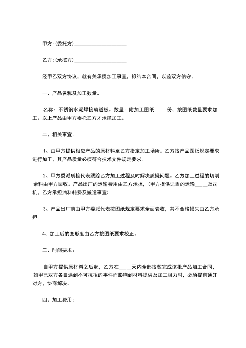 1、按甲方提供之图纸加工,甲方提供图纸项目全称为_____________________。