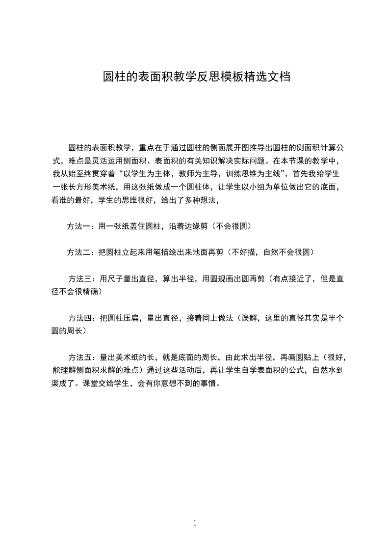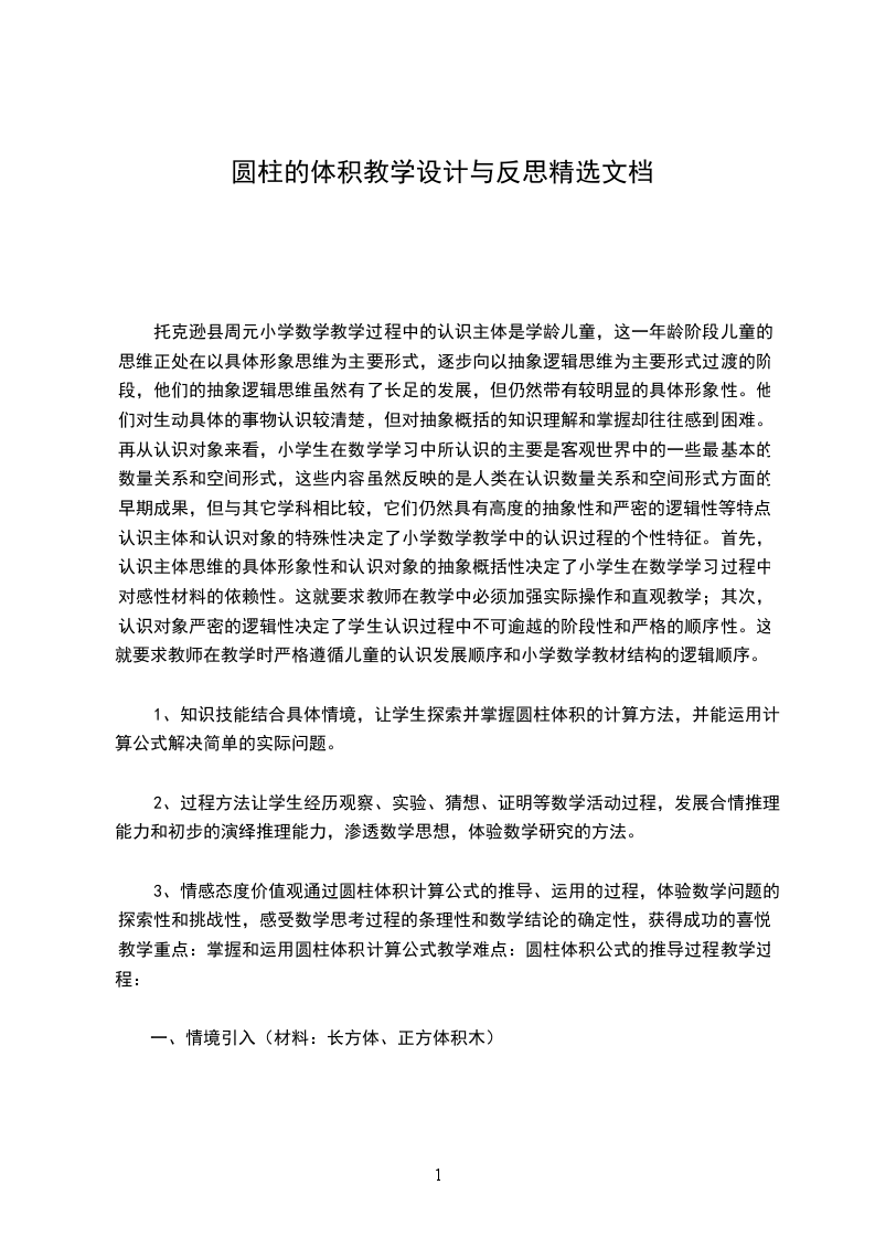 柱的体积教材简析:本节内容包括圆柱的体积计算公式的推导,利用公式直接计算圆柱的体积,利用公式求:圆柱形物体的容积。教材充分利用学生学过的知识作铺垫,采用迁移法,引导学生将圆柱体化成已学过的立体图形,再通过观察、比较找两个图形之间的关系,可推导出圆柱的体积计算公式。教学目的:1、运用迁移规律,引导学生借助因面积计算公式的推导方法来推导圆柱的体积计算公式,并理解这个过程。