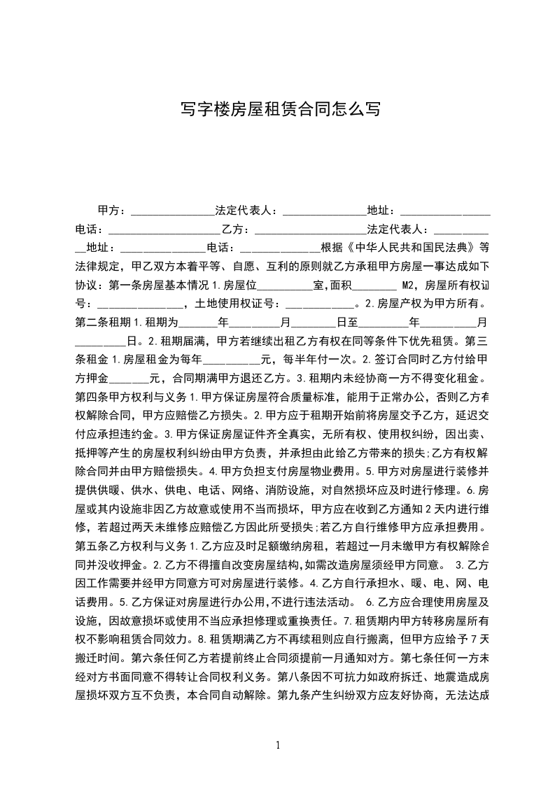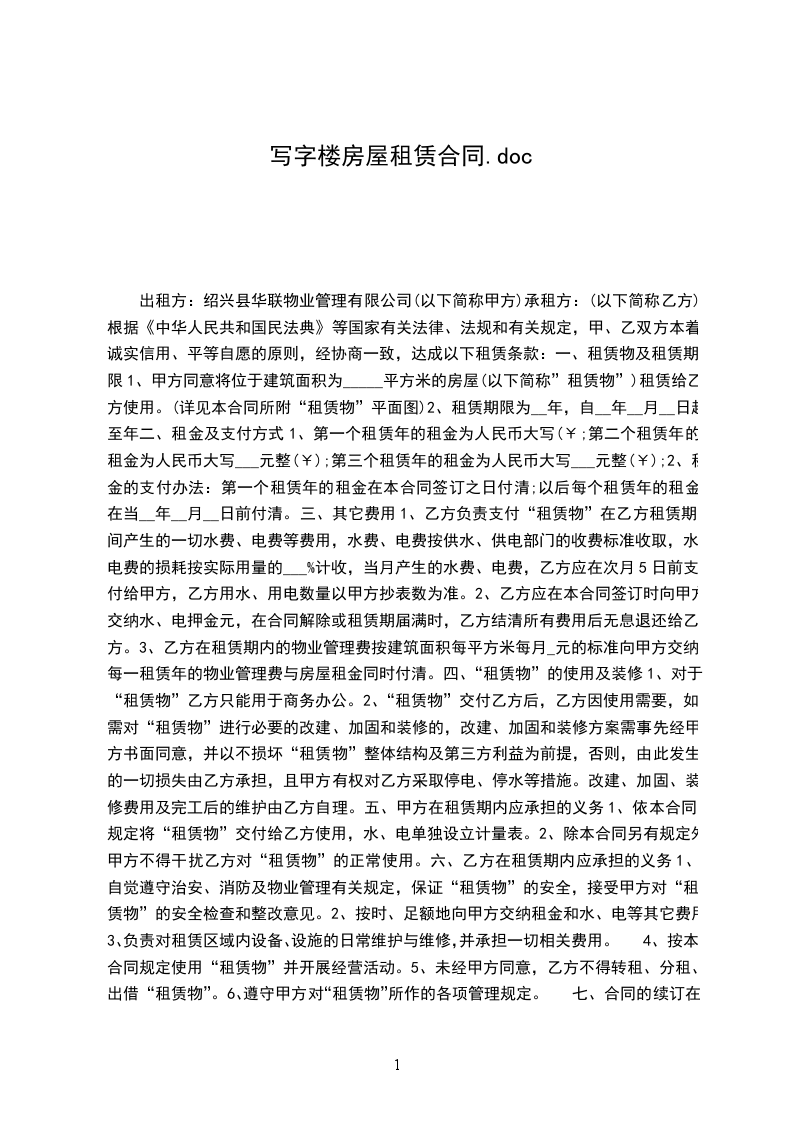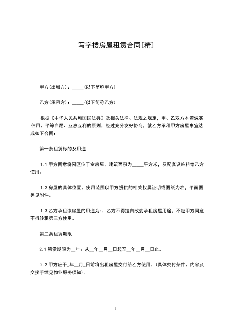 第一条租用工作用房地址、用途、面积。