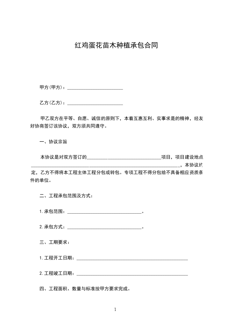 九、履约保证金:乙方在本合同签订后_____日内向甲方支付履约保证金__________万元,大写__________元整。栽植任务完成后履约保证金转入养护质保金。