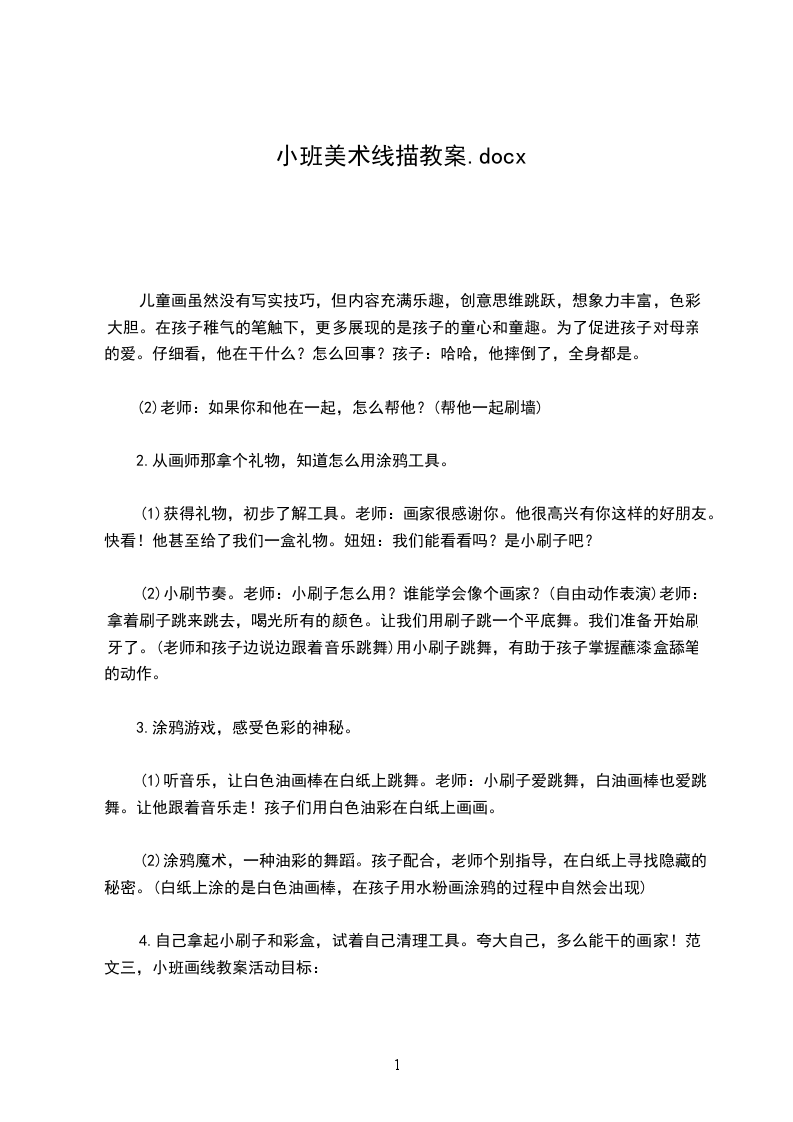 2、掌握简单的点、线、面的运用,重点是培养小朋友对线描绘画的兴趣。