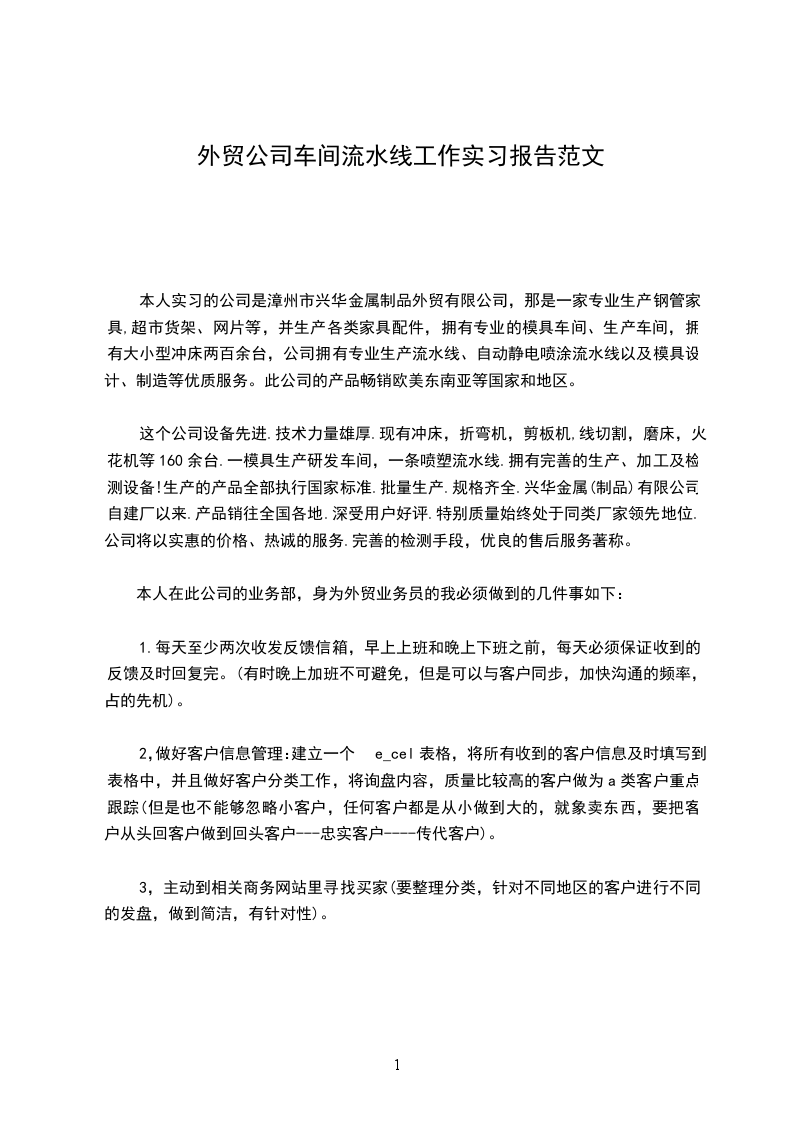 有一句话叫做:不经历风雨,怎么见彩虹?我想改一下:不真正进入车间,怎么能了解车间。时间很快,转眼之间,线束车间十多天的实习已经结束了,在这十多天内我收获颇丰,下面我就介绍一下大致内容:一、目的:走进车间、了解车间、学习车间工作流程与方法、学习工人师傅好的经验。