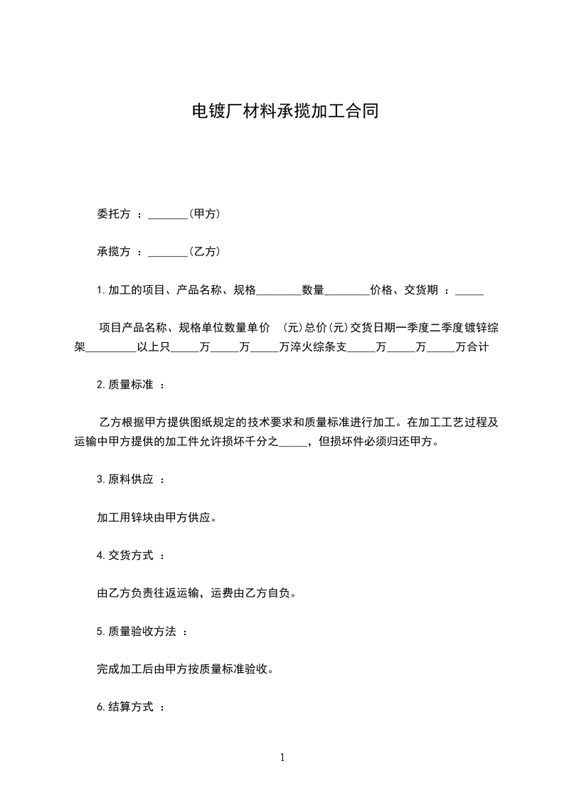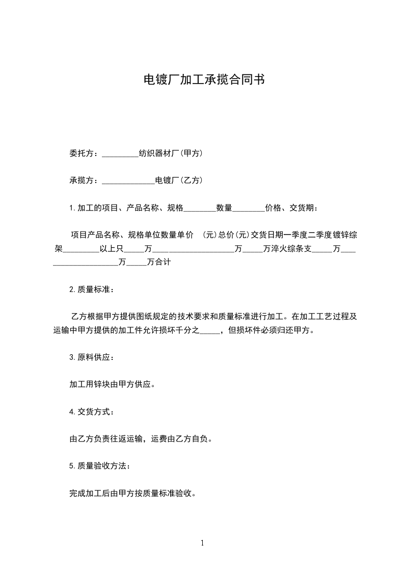 承揽方:_____________________电镀厂(乙方)