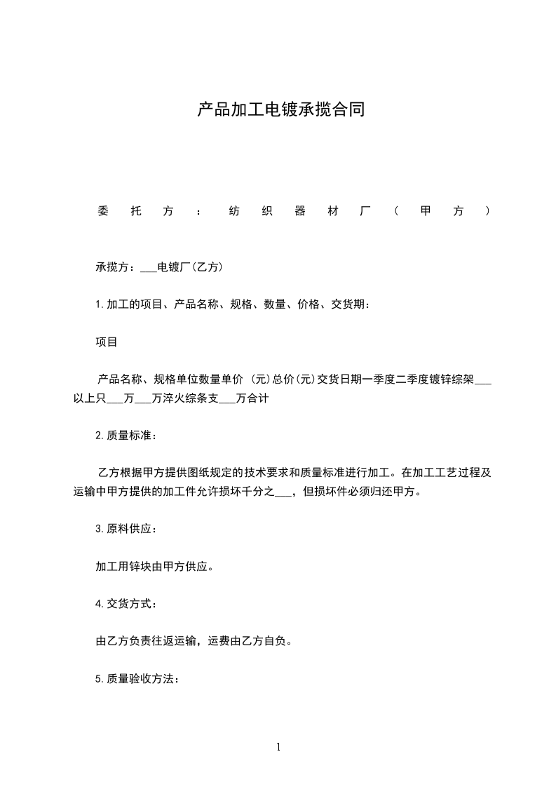 1.加工的项目、产品名称、规格________数量________价格、交货期: