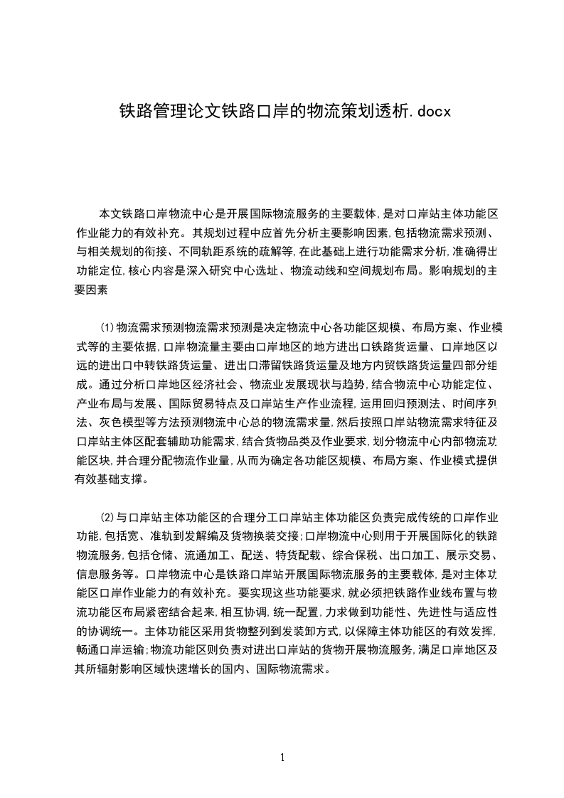 (3)物流中心规划布局淤空间布局能对于铁路物流配套服务区、商贸物流区、保税区均具有支撑作用,因而宜设于三者之间,以便做到充分衔接。保税区可为进入物流中心的货物提供保税仓储、出口加工、中转配送、转口贸易等保税物流服务,宜设于距铁路作业区较近位置,以便货物进出保税区作业便利。当进入保税区货运量需求较大时,为提高作业效率,也可考虑将铁路线路引入保税区。口岸物流中心内部功能区布局详见图3。随着口岸地区产业园区规划建设和国际间经贸合作的快速发展,铁路口岸物流中心的规划建设日益迫切。从分析铁路口岸站物流发展现状及存在的问题入手,提出铁路口岸物流中心规划建设的必要性,并对影响铁路口岸物流中心规划的主要因素和物流中心功能需求进行分析,最后从物流中心选址、主要作业流线及规划布局三个方面对规划方案进行深入研究,对指导铁路口岸物流中心规划设计具有一定的参考价值。免责声明:图文来源网络征集,版权归原作者所有。若侵犯了您的合法权益,请作者持权属证明与本站联系,我们将及时更正、删除!谢谢!