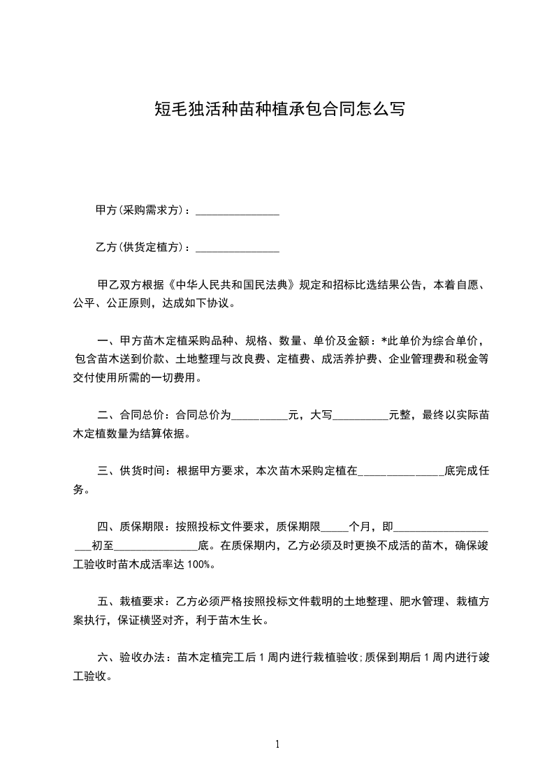 二、合同总价:合同总价为__________元,大写__________元整,最终以实际苗木定植数量为结算依据。