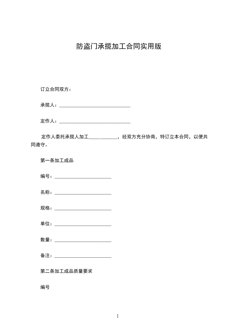 第一条定作物名称、数量、规格、质量、价款