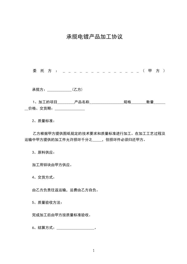 承揽方:_____________________电镀厂(乙方)