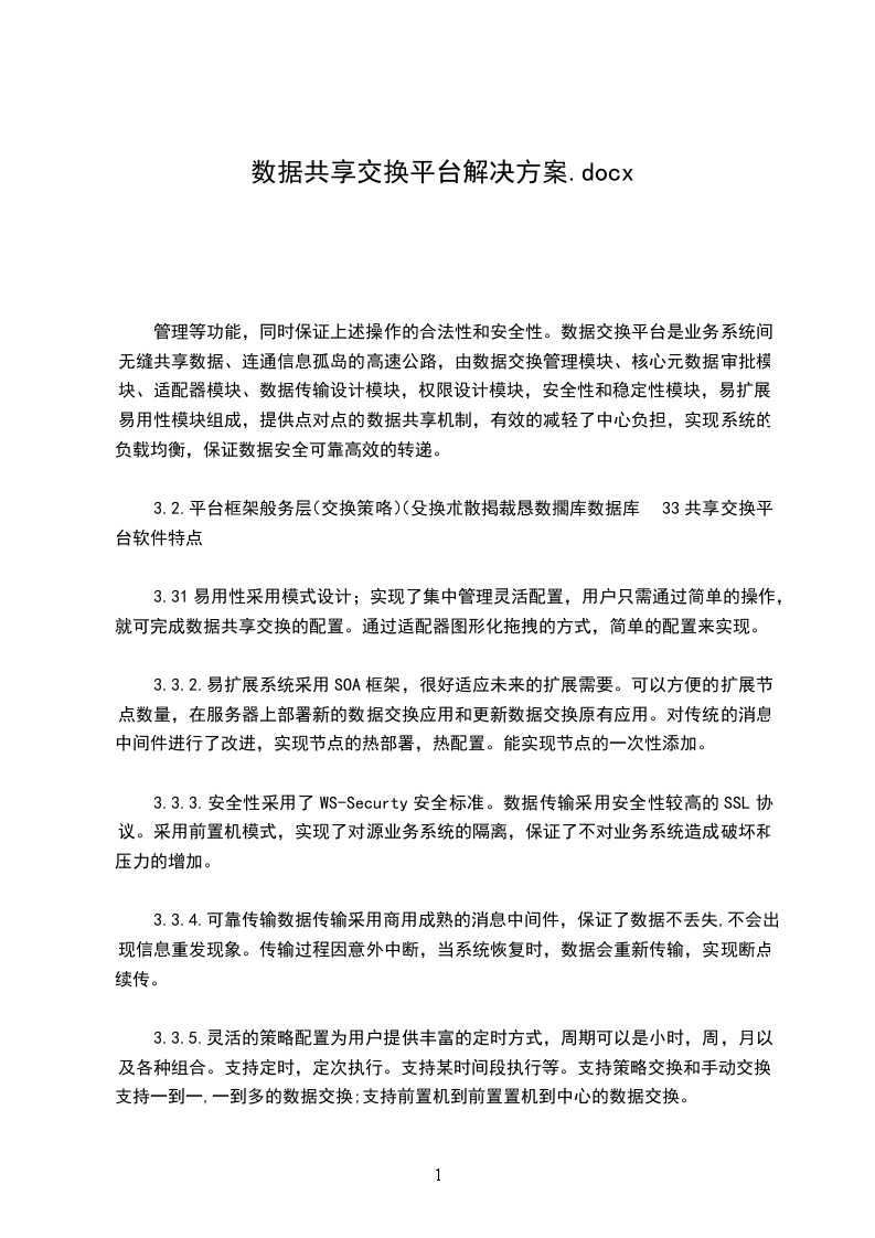 3.2.平台框架般务层(交换策咯)(殳换朮散掲裁恳数擱库数据库33共享交换平台软件特点