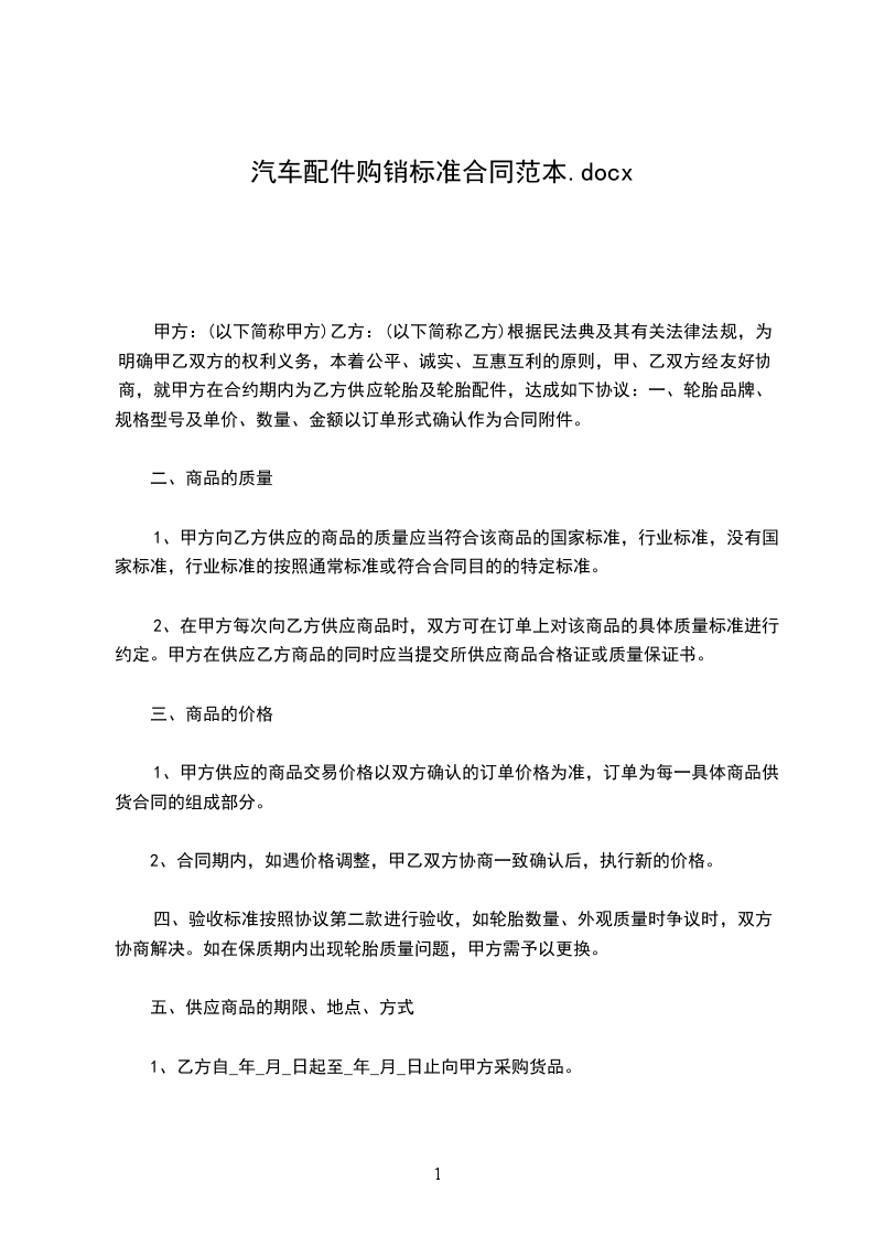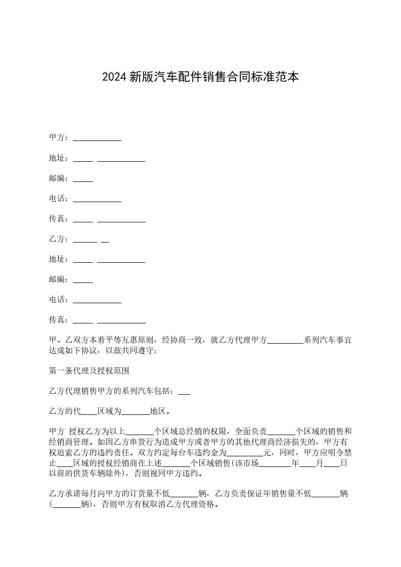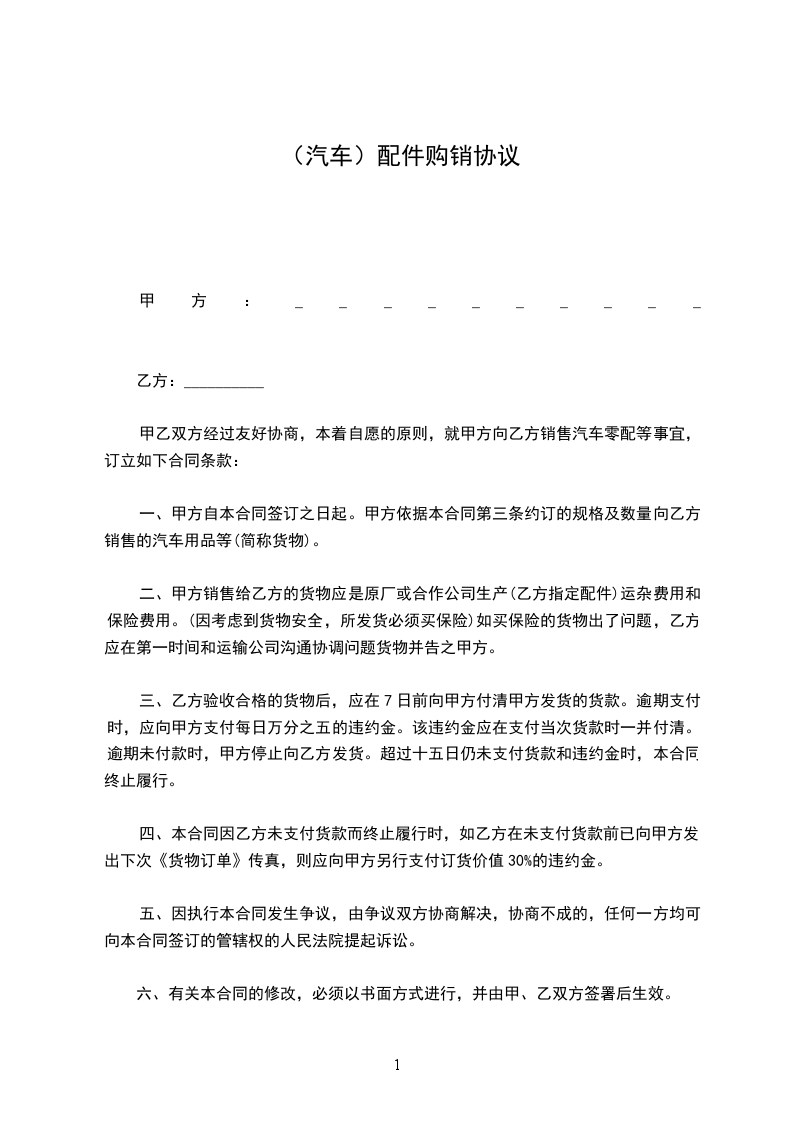 甲方:乙方:甲乙双方经友好协商,就乙方向甲方销售汽车配件等事宜,订立如下合同条款:一、自本合同签订日起,乙方依据本合同起向甲方销售汽车零部件。
