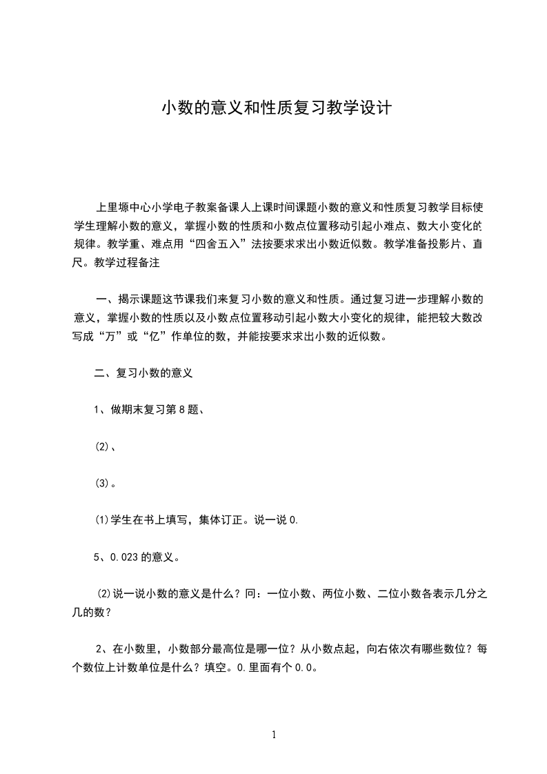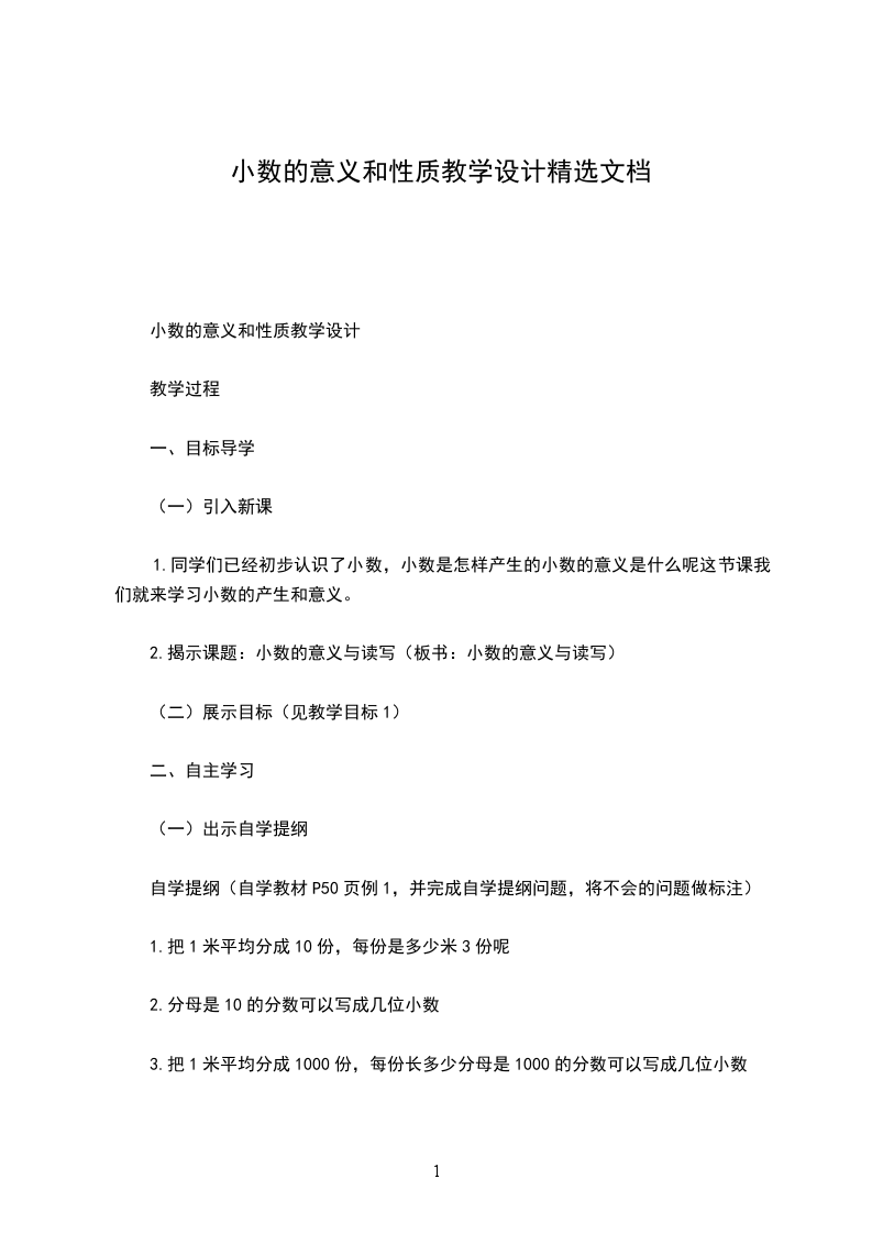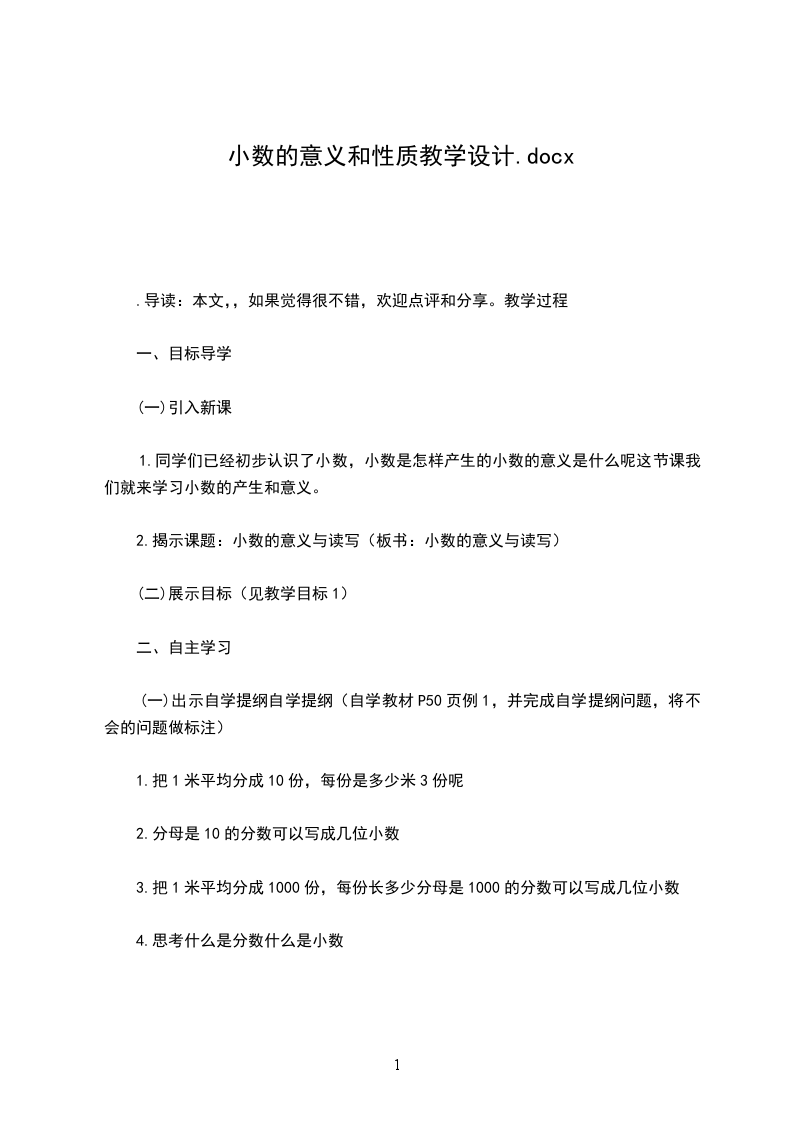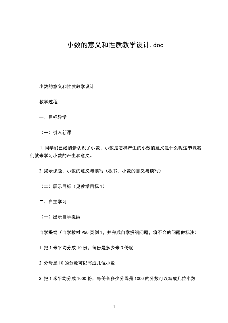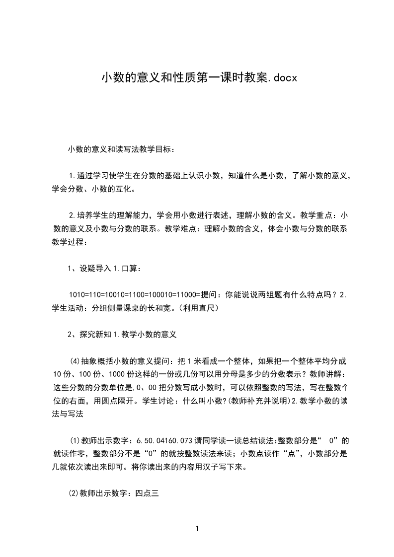 1.同学们已经初步认识了小数,小数是怎样产生的小数的意义是什么呢这节课我们就来学习小数的产生和意义。