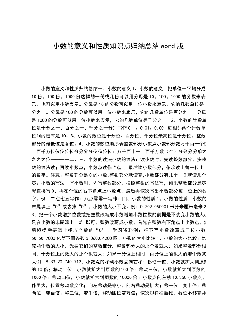(1)小数点把小数分成两部分,小数点左边的数是小数的部分,小数点右边的数是它的部分。