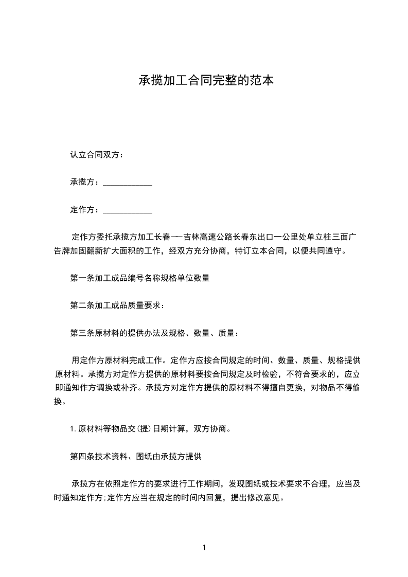 现有_________________单位将______________(地点或加工件全称)交予___________加工。经双方友好协商,本着互惠互利、诚信、公平的原则特制定以下条款,望双方遵守。
