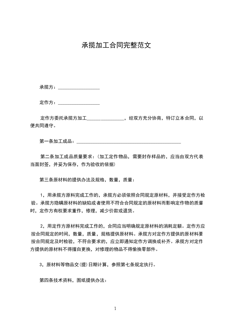 定作方委托承揽方加工________________,经双方充分协商,特订立本合同,以便共同遵守。