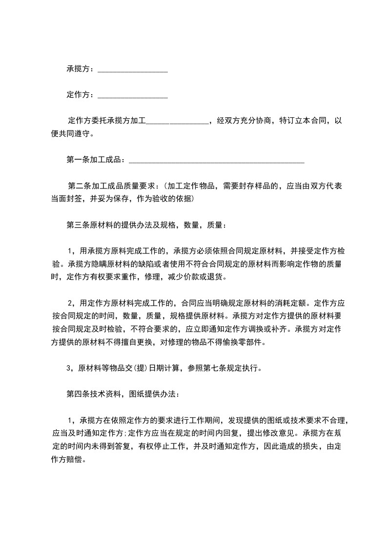 定作方委托承揽方加工________________,经双方充分协商,特订立本合同,以便共同遵守。