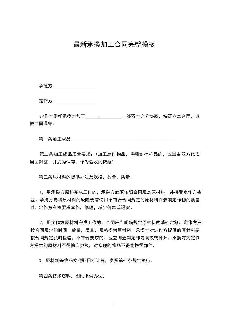 定作方委托承揽方加工________________,经双方充分协商,特订立本合同,以便共同遵守。