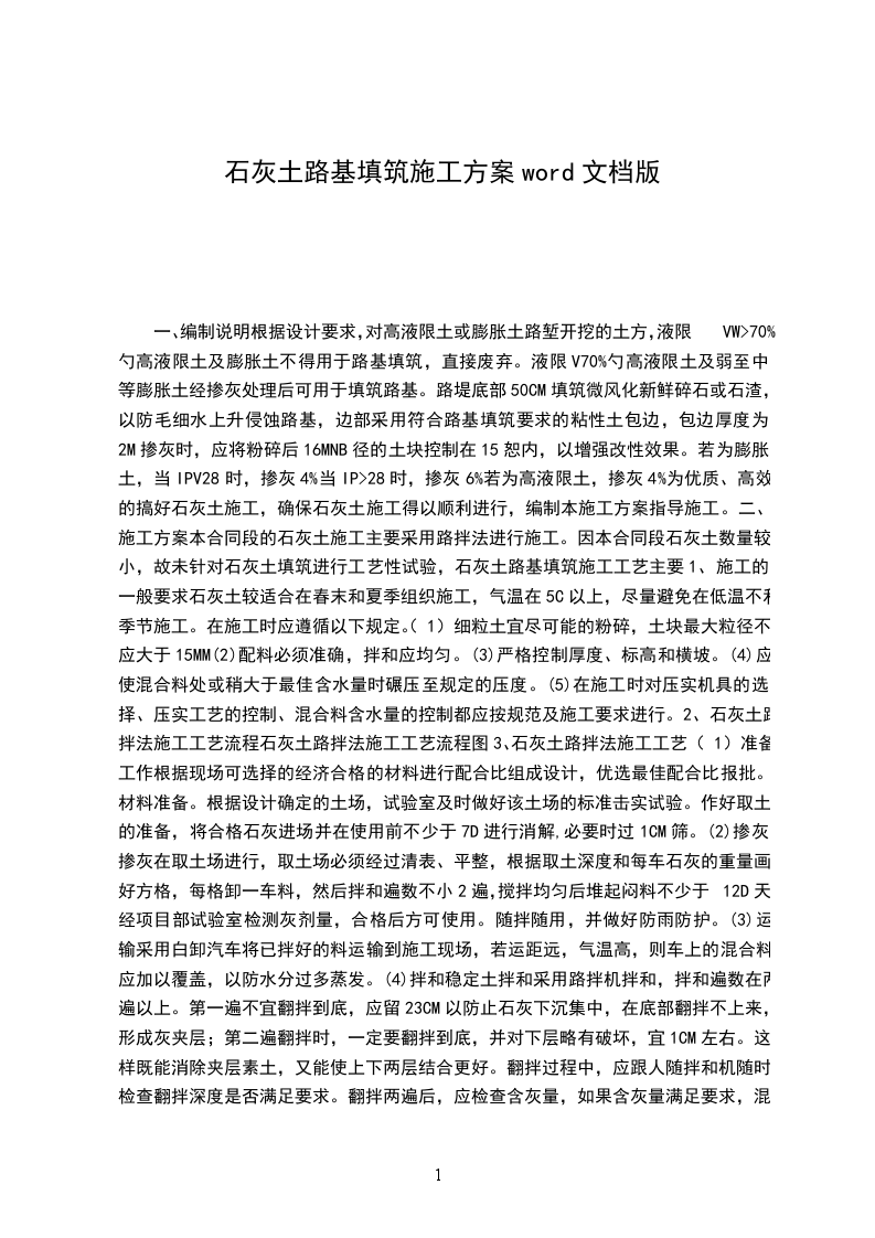 石灰土填筑路基施工方案