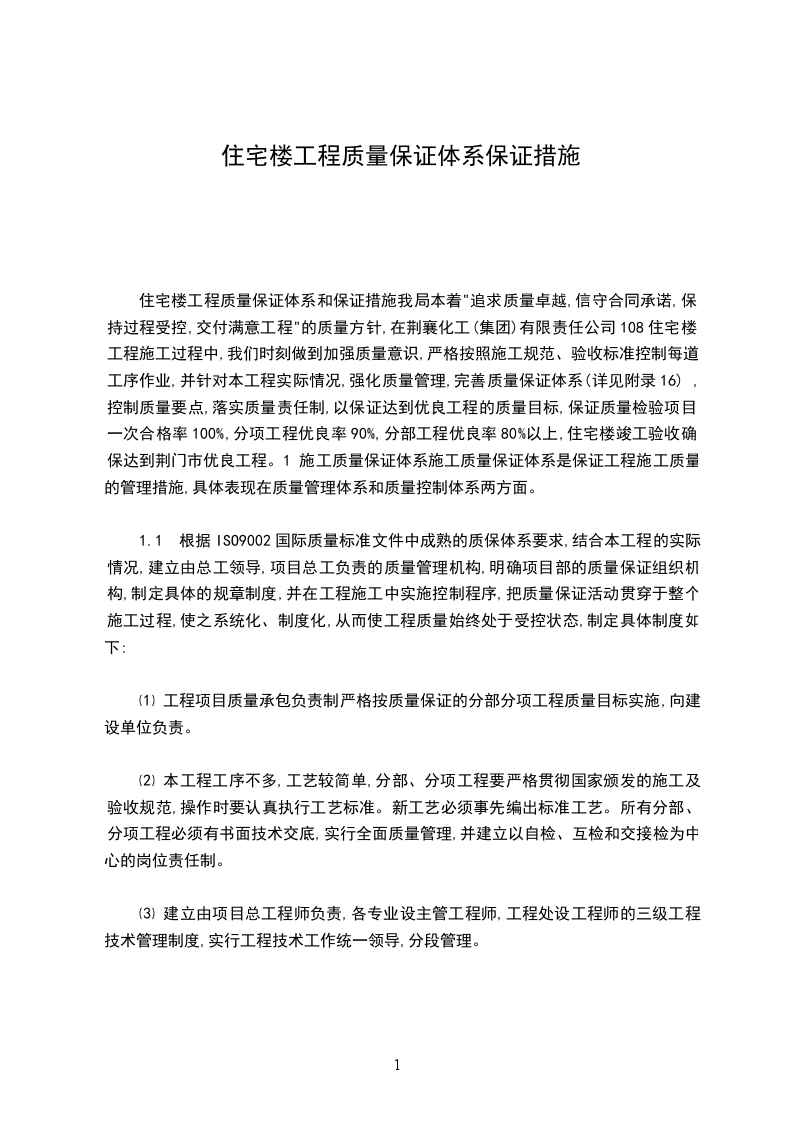 项目质量保证技术措施