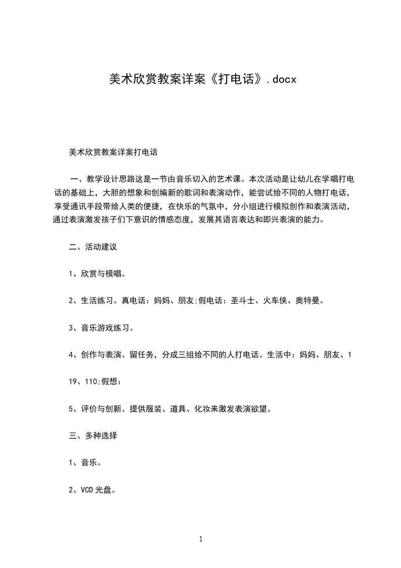 一、教学设计思路这是一节由音乐切入的艺术课。本次活动是让幼儿在学唱打电话的基础上,大胆的想象和创编新的歌词和表演动作,能尝试给不同的人物打电话,享受通讯手段带给人类的便捷,在快乐的气氛中,分小组进行模拟创作和表演活动,通过表演激发孩子们下意识的情感态度,发展其语言表达和即兴表演的能力。