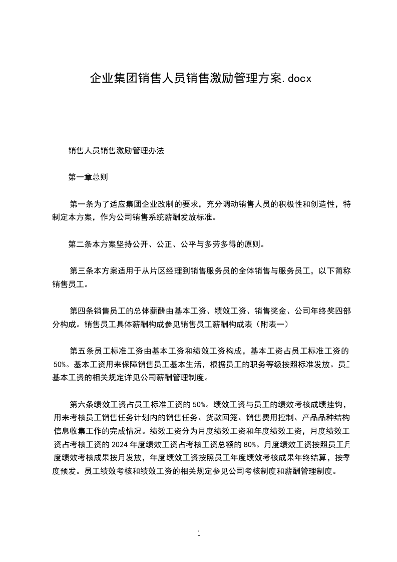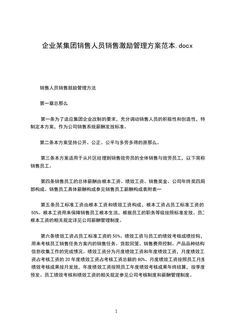 第一条为了适应集团企业改制的要求,充分调动销售人员的积极性和创造性,特制定本方案,作为公司销售系统薪酬发放标准。