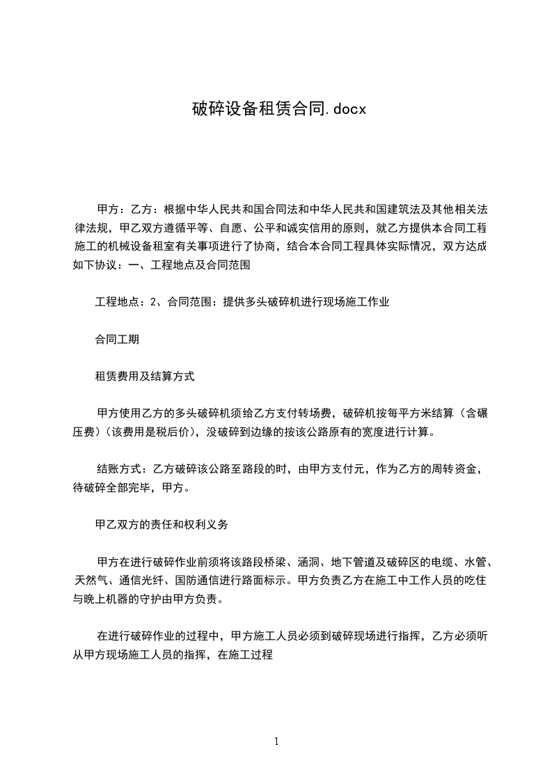 工程地点:2、合同范围:提供多头破碎机进行现场施工作业