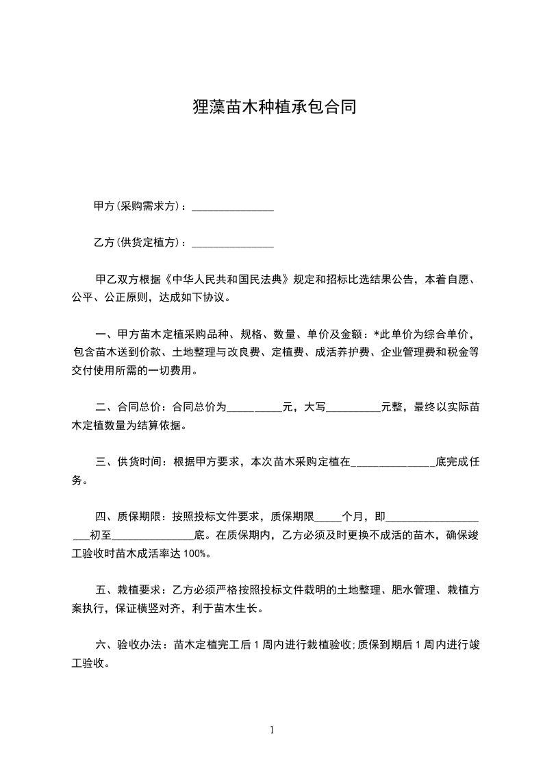 甲方委托________________________对________________________绿化苗木、草坪进行种植养护。经双方商定,签订如下合同: