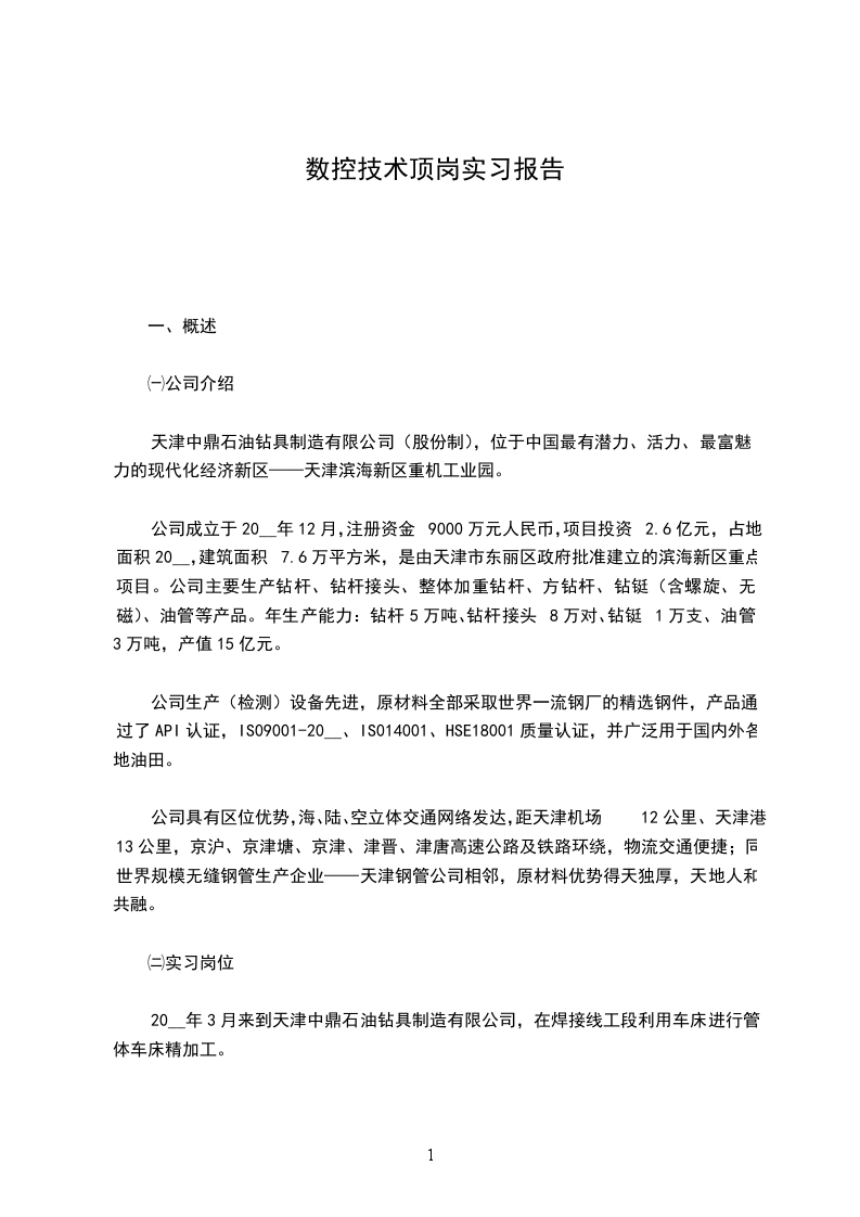 四、实习单位及部门:唐山市XX公司生产部金工车间